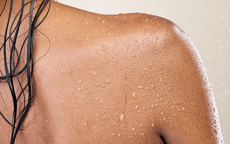 Humidifier votre peau sous la douche, appliquer en mouvements circulaires puis rincer.